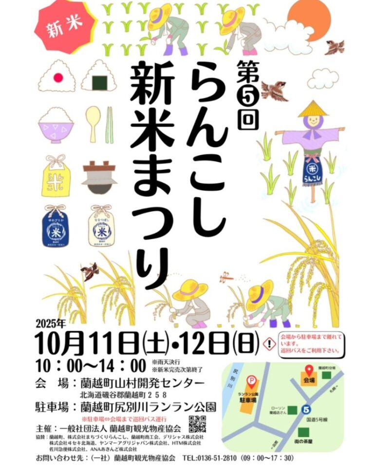 蘭越町の蘭越町山村開発センターで10月11日、12日と2日間、新米まつりが開催されます。蘭越町の沢山の稲作農家が集まり新米の販売をいたします。北山農場も出品いたします。各種イベントも開催されますので是非お越しください。